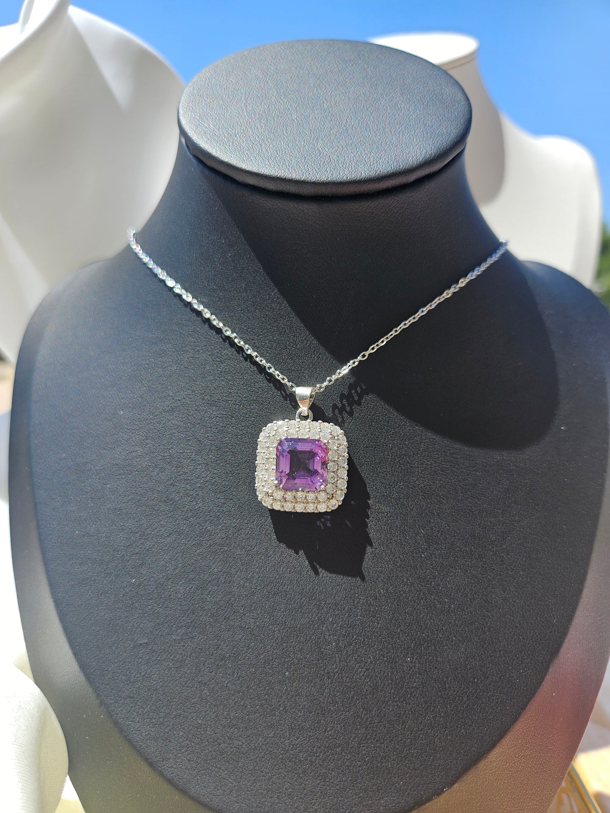 Natural Amethyst Square Shape Necklace