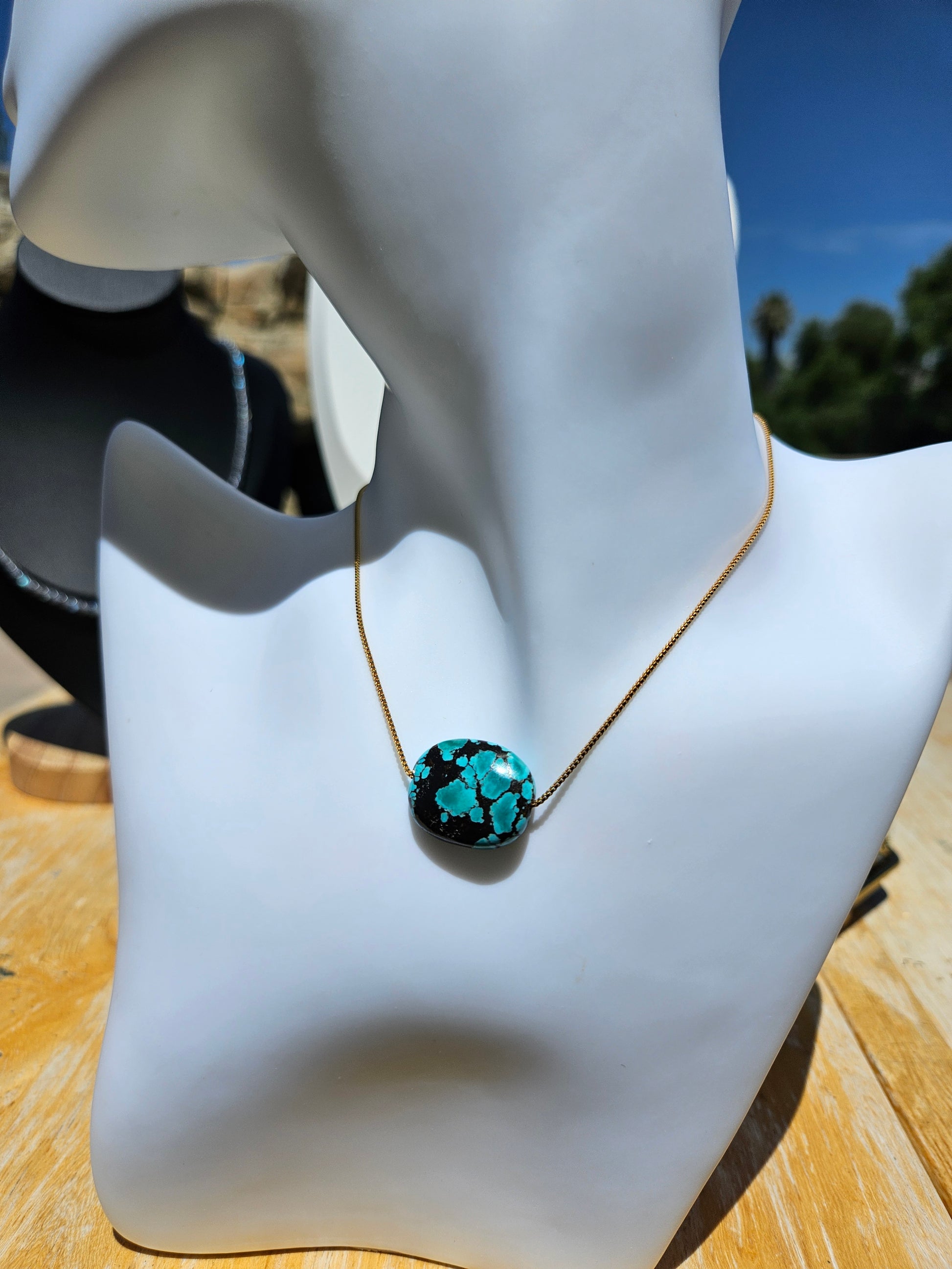 Whether a unique gift for friends and family during the holidays or a delicate personal treat, this natural turquoise necklace is a perfect choice. Let this unique beauty from nature, carrying your best wishes, accompany you and your family and friends through every beautiful moment.