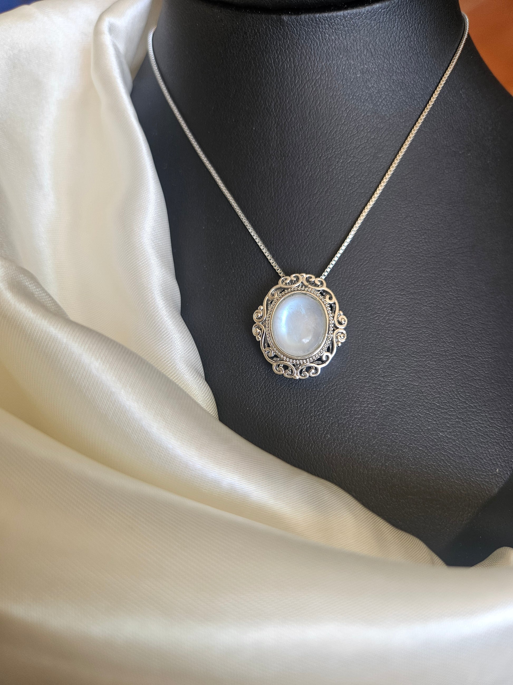 This natural moonstone pendant necklace is not only a beautiful accessory, but also a gemstone full of romantic and healing energy.