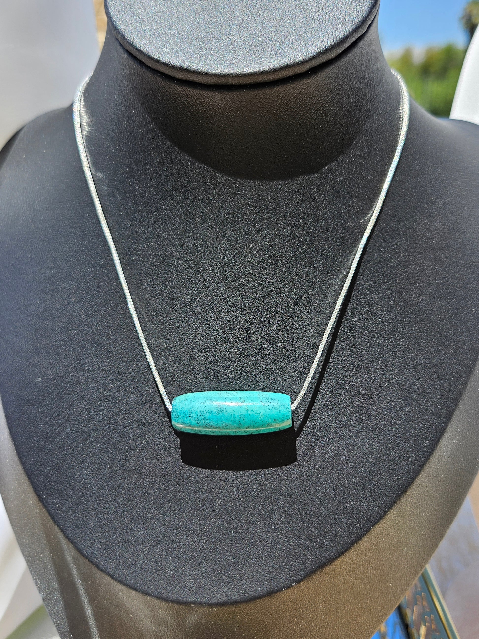 Natural Turquoise Dzi Bead Shape N atural Texture Vintage Pendant Silver Plated Necklace