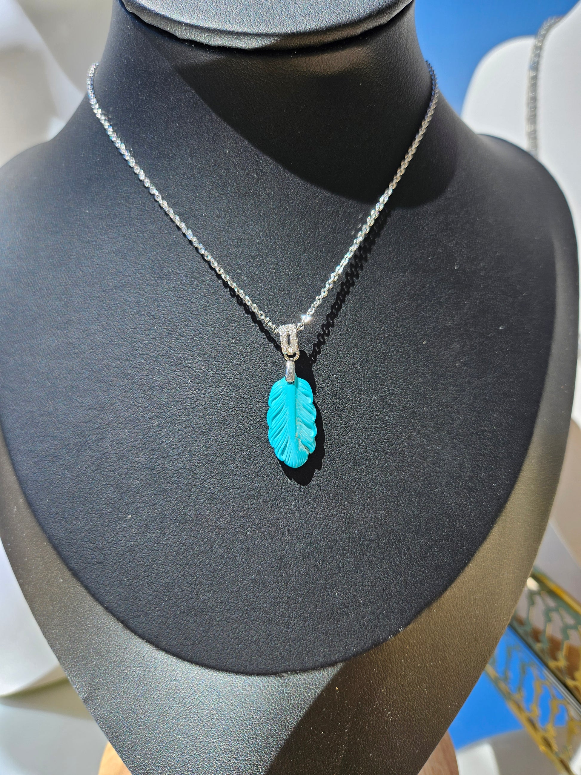 Natural Turquoise Feather-shaped Vintage Pendant Silver-plated Necklace