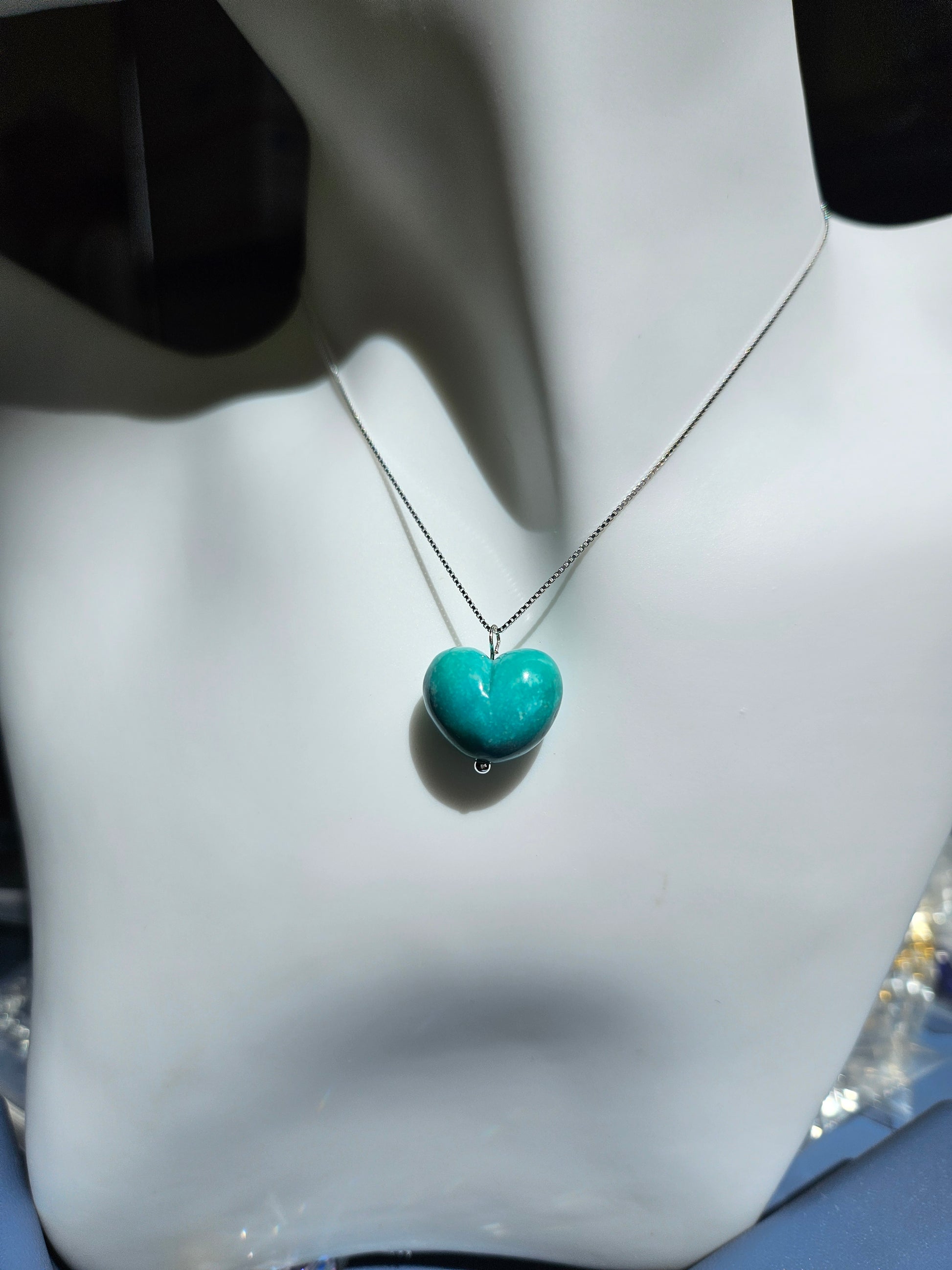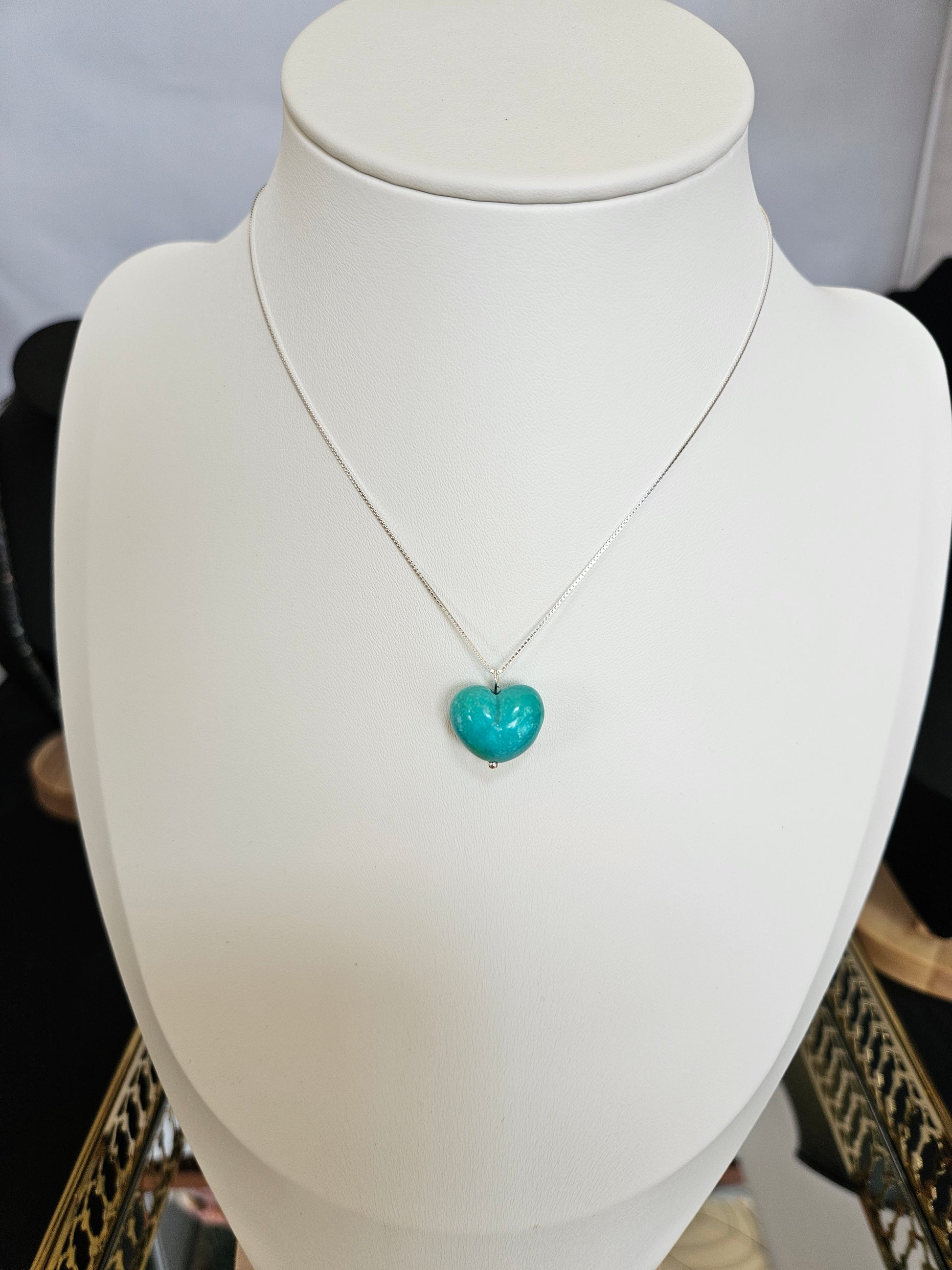 Natural Turquoise Heart Shape Vintage Pendant Hand Carved 925 Sterling Silver Necklace