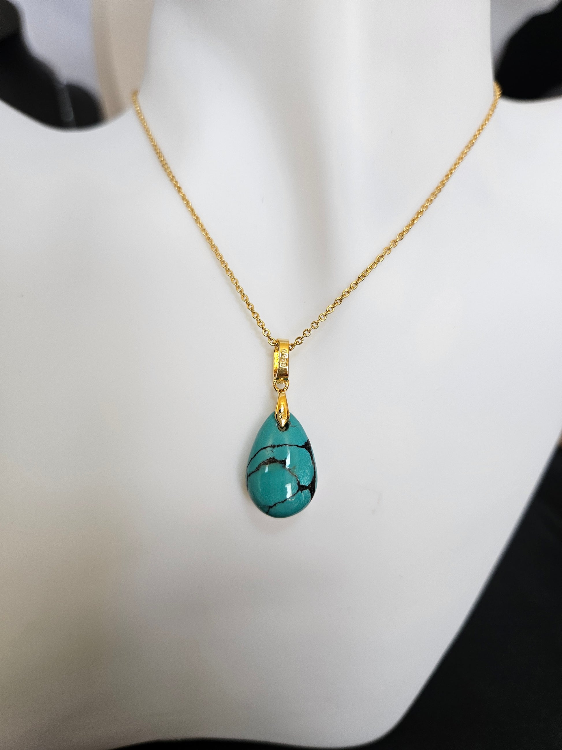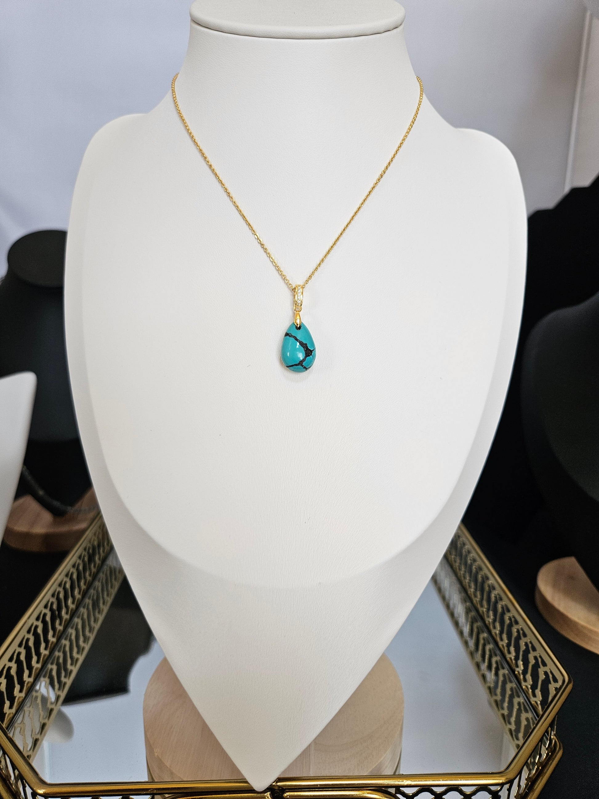 Natural Turquoise Natural Texture Teardrop-shaped Retro Pendant Gold-plated Necklace