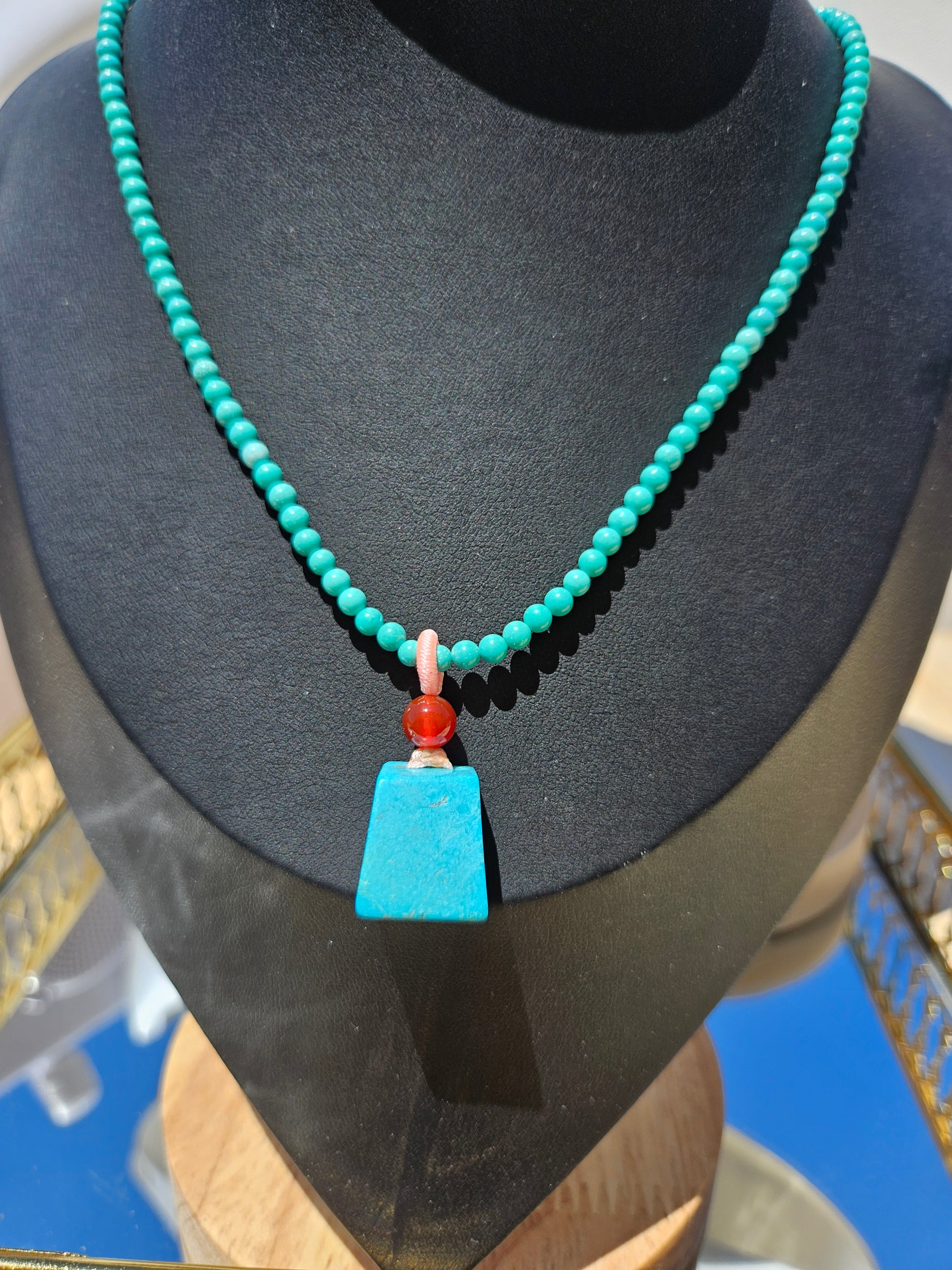This exquisite necklace features precious natural turquoise, meticulously crafted and carved to preserve its unique natural texture and color. Turquoise's blue or turquoise hues are nature's most generous gifts, like a clear sky or a crystal-clear lake, evoking tranquility and peace.
