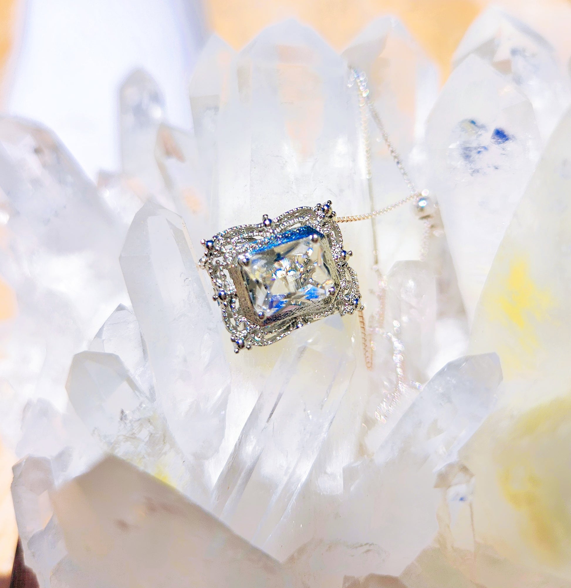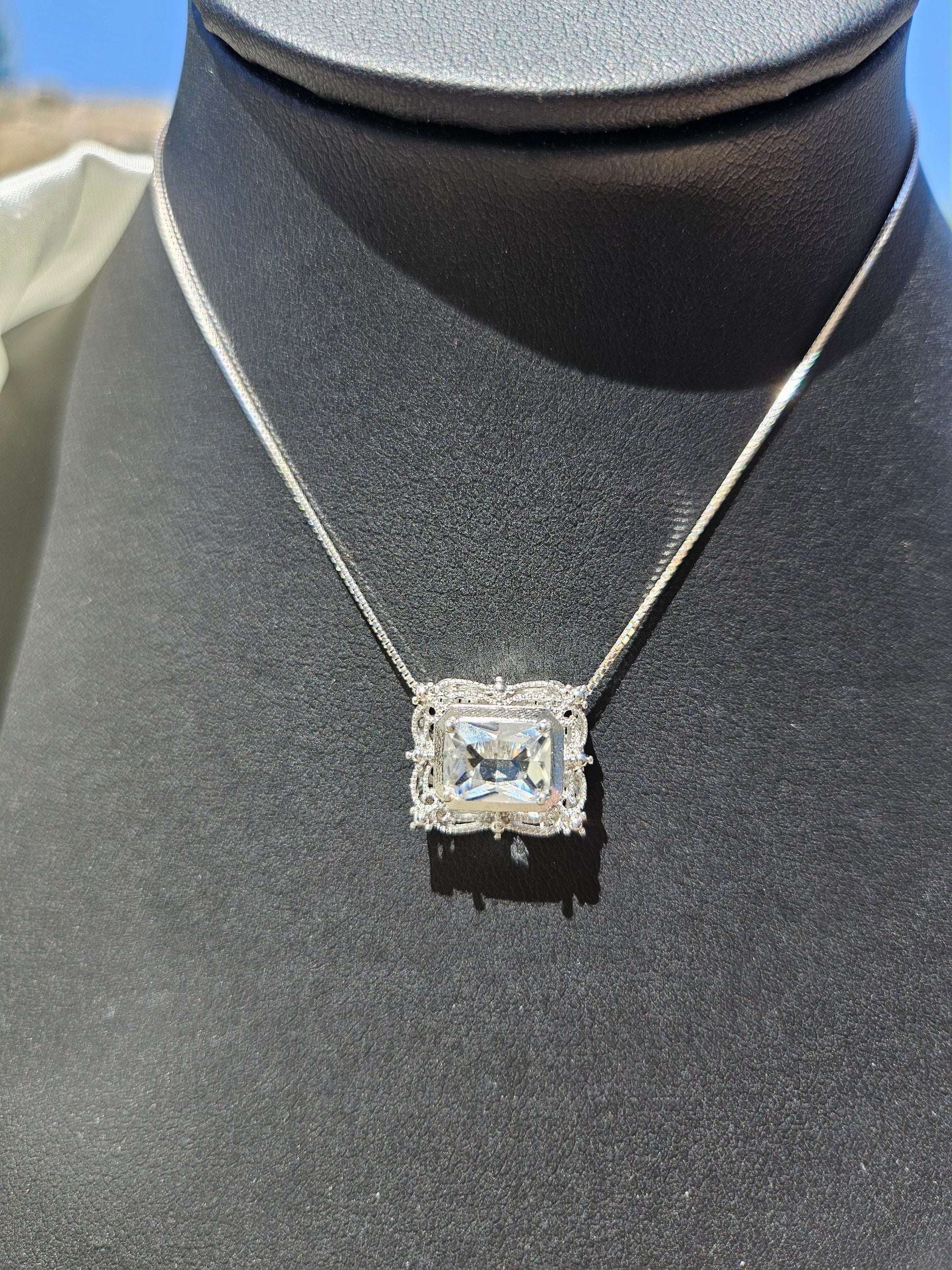 Natural White Quartz Square Shaped Necklace Silver Plated